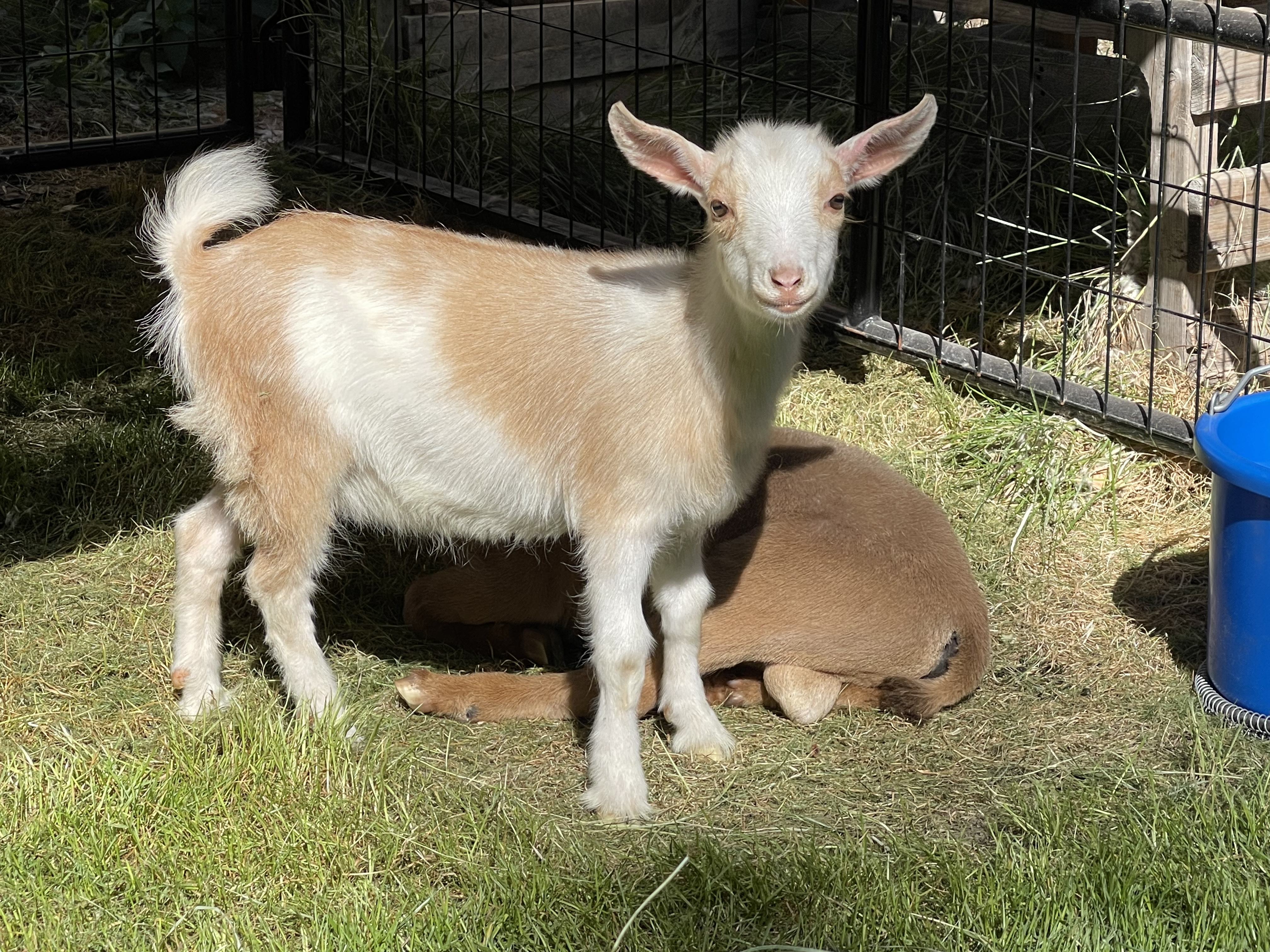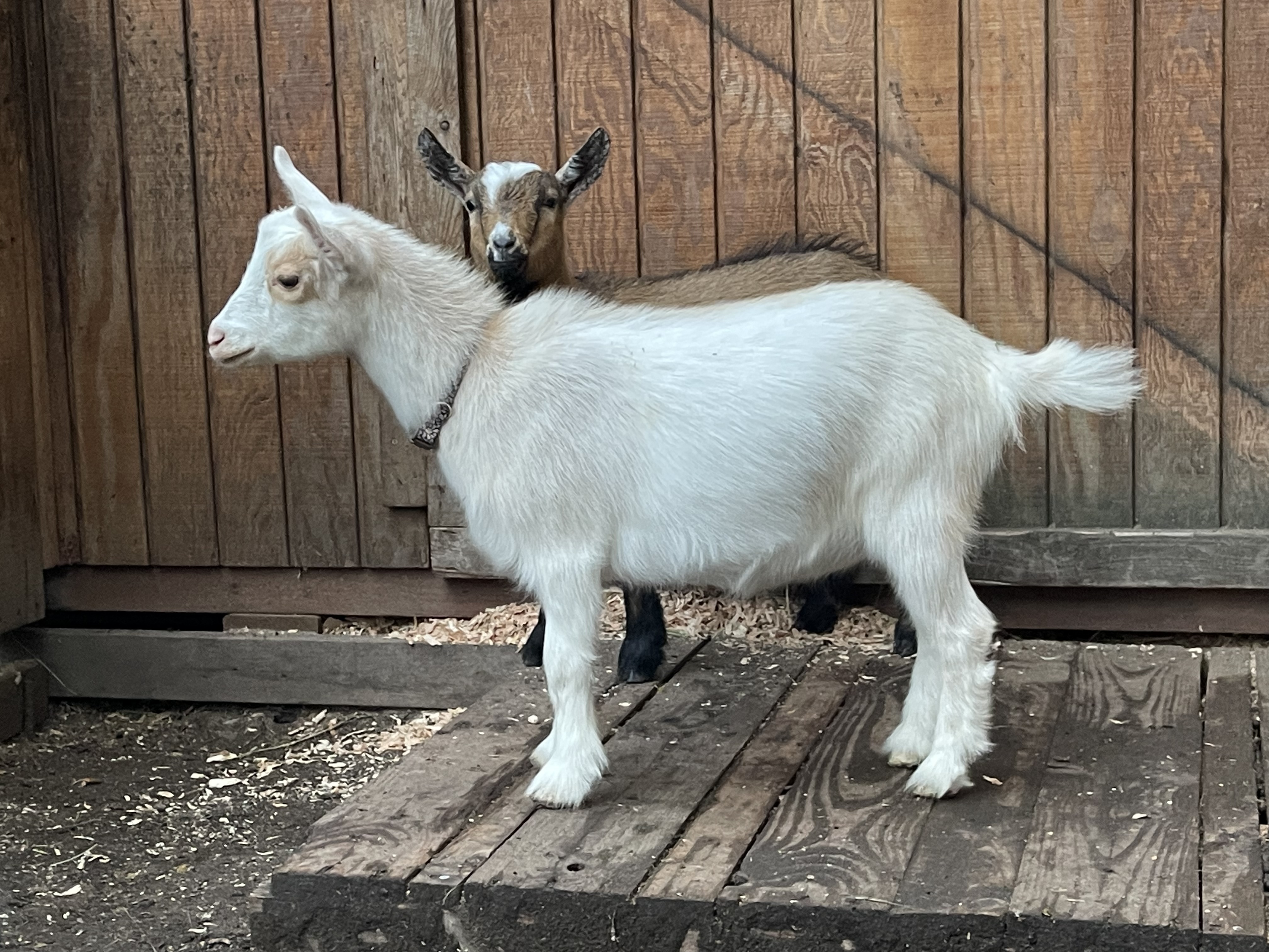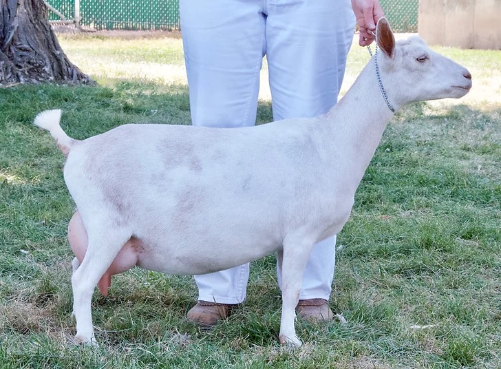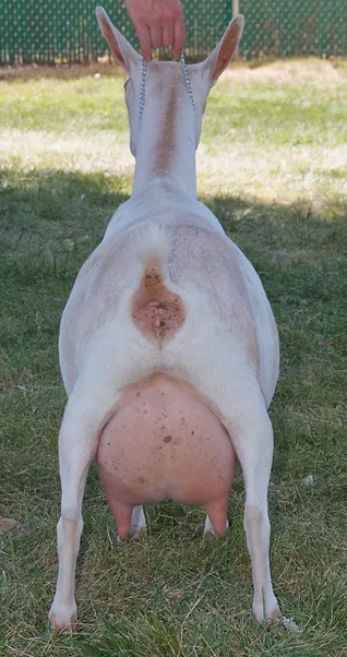 Necco is one of the does that we imported for 2022. Necco won't be bred until fall of 2023 for spring 2024 kids. We are very excited about using her in our program. We would like to improve rump width and overall capacity and Necco is looking promising! Photos of Necco's dam are used with permission from Hansons Hideaway Farm. You can check out more pics/information about her dam below