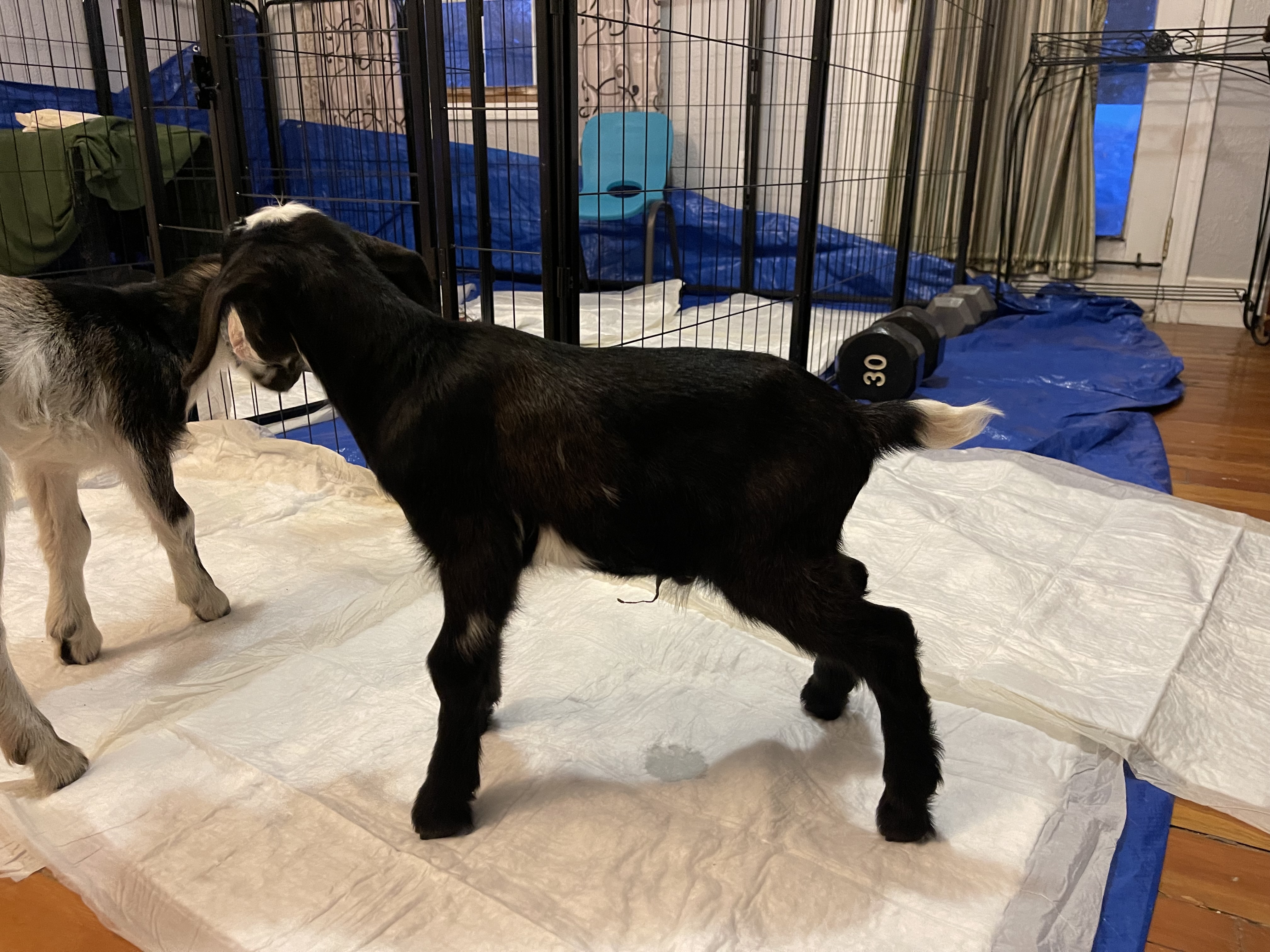 F1 Mini Nubian. Registrable with either MDGA or TMGR. Disbudded and vaccinated with CDT. Mambo’s dam excelled in milk production and extended lactation.