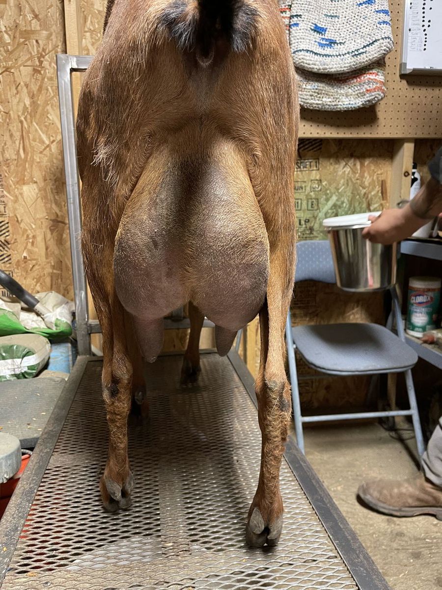 Rumba is our only standard size goat. We want to use her to start our Mini-Nubian breeding program. She has done exceptionally well with extended lactation.