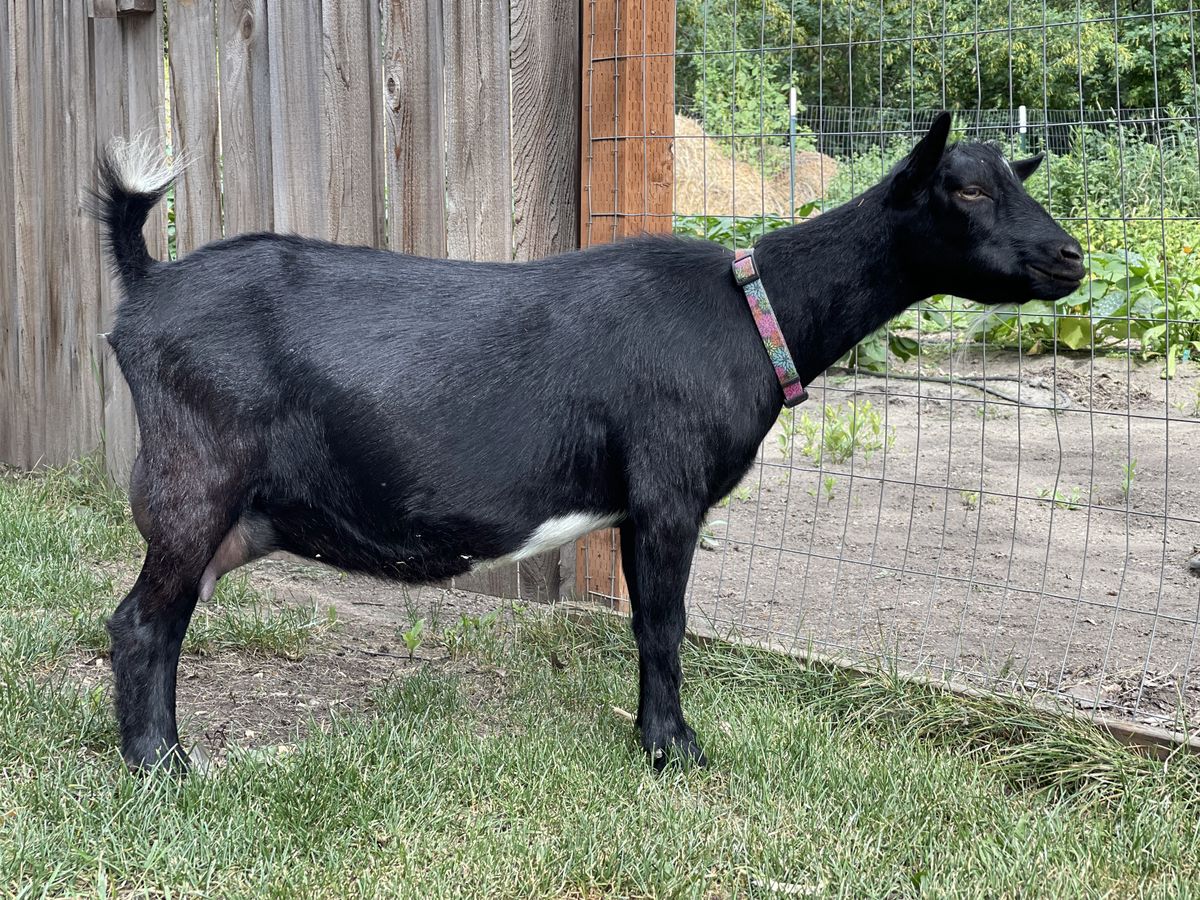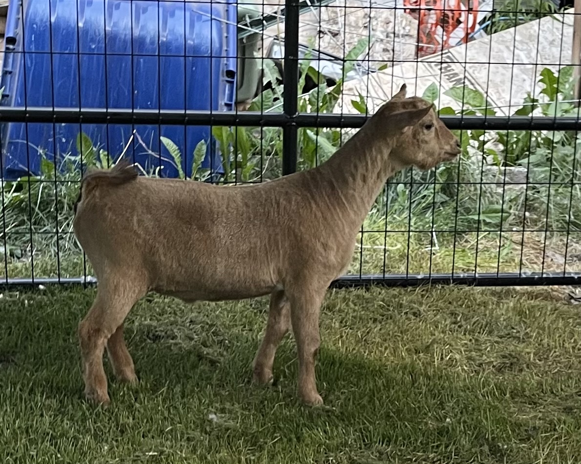 ANATEVKA FARMS TW LICORICE 2*M (pending) | Senior Doe | 9/23/2021 | Sire: FAR NORTH FARM TWIX Dam: THE CRAI CINNAMON 1*M |